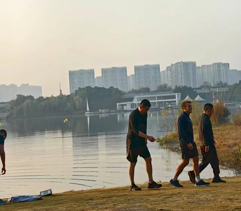 Note: The photoes were shot by local people in Chengdu seeing Macron doing morning exercise in Jingchenghu Lake in Chengdu.