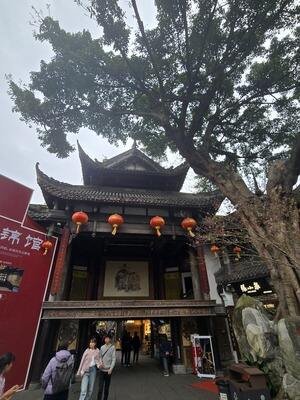 to Jinli Street is the ancient Temple of Marquis Wu, while the Jinjiang River lies to the north and the Rainbow Bridge to the east. By combining the spirits and styles of the Qin, Han, Ming and Qing Dynasties and the Three Kingdoms period, along with the folk customs of western Sichuan, Jinli has enriched the 'Sanguo' culture.