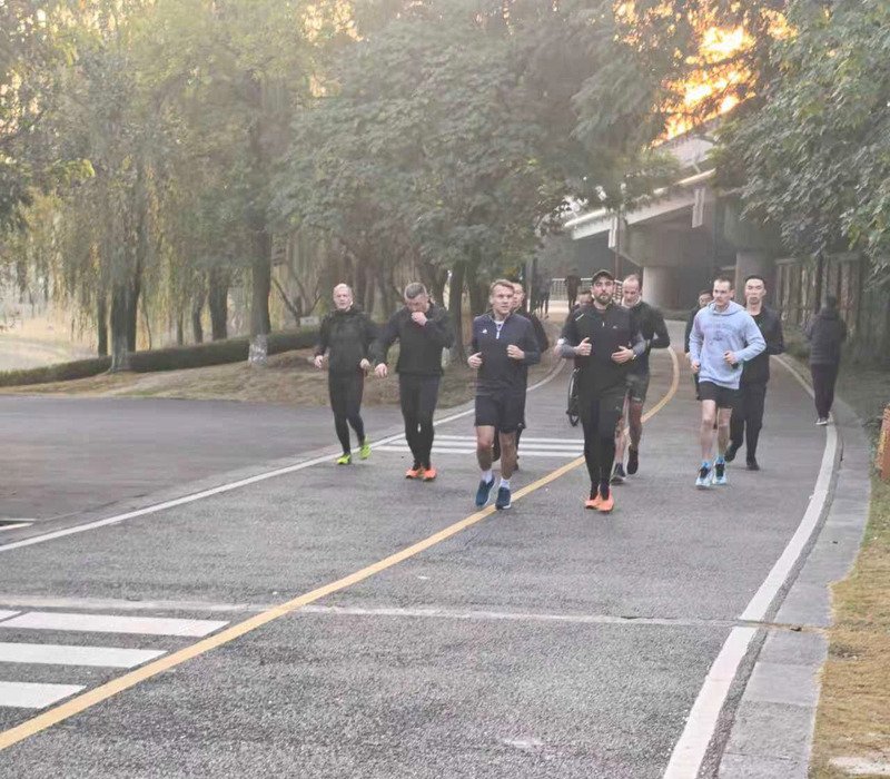 Note: The photoes were shot by local people in Chengdu seeing Macron doing morning exercise in Jingchenghu Lake in Chengdu.