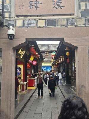 to Jinli Street is the ancient Temple of Marquis Wu, while the Jinjiang River lies to the north and the Rainbow Bridge to the east. By combining the spirits and styles of the Qin, Han, Ming and Qing Dynasties and the Three Kingdoms period, along with the folk customs of western Sichuan, Jinli has enriched the 'Sanguo' culture.