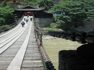 Luding Bridge was built in the 44th year (1705) of the Kangxi reign of the Qing Dynasty (1644-1911). It is an iron suspension bridge over Dadu River. Its net length is 100 meters. It is 28 meters wide and 14 meters high from the water surface. The whole bridge has 13 iron chains, each of them weighing 2.5 tons. Among them, nine parallel chains are tied to the two banks. The wooden boards are spread on the chains for passengers to walk on. The other four chains are suspended on the sides on the left and right, with two chains on either side to be the handrails. The stele with the bridge's name written by Emperor Kangxi is still hung at the one end of the bridge.