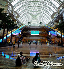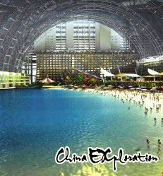 The newly opened Chengdu New Century Global Center provides a new recreation for people visiting Chengdu. The 176 million square meters of New Century Global Center is boasting the largest single building in the world. The dream-like main building takes ‘ flowing melody” as its designing philosophy, and ‘ ocean ’ as its theme, therefore derived the architecture style of sea gull flying, whale flowing, and sea waving . It is amazing that in the inner land city the entertainment and recreation was created as mode of folk island and sea view!