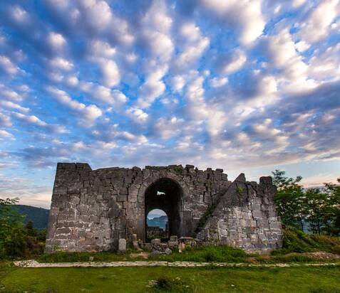 Song Dynasty's Baoyou emperor era, and was destroyed in 1600 A.D. during the Ming Dynasty's Suppression War Campaign. This site stands as a crucial cultural relic of the Yang family's king system of Tusi in southwestern Bozhou prefecture, spanning the Song, Yuan, and Ming dynasties. The fortress features nine strategic passes: six front passes (Tongzhu Pass, Tiezhu Pass, Feihu Pass, Feilong Pass, Chaotian Pass, and Feifeng Pass) and three rear passes (Wan 'an Pass, Erdao Pass, and Toudao Pass). More than a military stronghold, Hai Long Tun is now a living testament to Tusi civilization etched into the landscape. From the winding earthen walls of Baoyou emperor's era to the crumbling fortifications of Wanli emperor's reign, these remnants vividly document the evolution of frontier governance, serving as a three-dimensional chronicle of China's unification process.