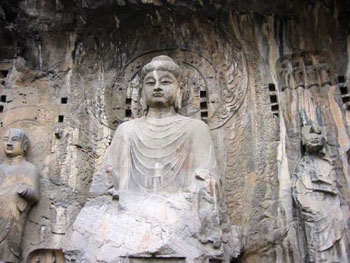 Located 13 km south of Luoyang, Henan Province, the Longmen Grottoes are concentrated on the east and west cliffs of the Yishui River, and stretch for one km. Work started on the grottoes around the year 493, during the Northern Wei Dynasty, and continued for the next 400 years. In total there are 2,345 caves and niches, housing more than 100,000 statues of Buddha, Bodhisattvas and Arhats, together with 2,840 inscribed stone tablets and over 60 stone stupas. Among them, the most representative caves are: Guyang Cave, Binyang Cave, The Lotus (Lianhua) Cave of Northern Wei, Qianxi Temple, Cave of Ten Thousand Buddhas (Wanfuo), Fengxian Temple and Kanjing Temple. The rich collection of statues and figures, most of which can be dated, facilitate the study of the history of Chinese sculpture with precise data.