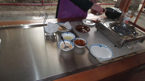 When we went out of the hall, there is a person make pancake for tourists, one of my favorite snack. There are salty and sweet two flavor.