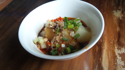 After finished in the exhibition hall, we head for the little factory of Pixian Bean Paste.We can make and taste the beancurd jelly.