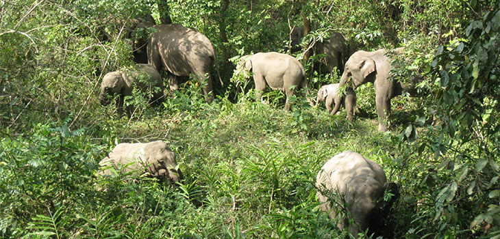 The wild elephant in China live only in the tropical rainforest of Xishuangbanna and Banna Wild Elephant Valley, 50 km north of Jinghohng city, is the place that the wild elephants move about most often.