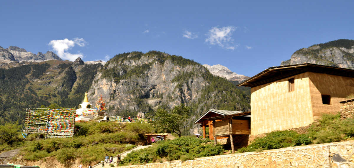 Not far north of Lijiang lays the famous Tiger Leaping Gorge, the deepest gorge of the world! Wedged by the Haba Snow- and the Jade Dragon Snow Mountain with heights of over 5500m the still young Yangtze River makes his roaring way through 34 rapids. Upon arrival in Shangri-La, you will have entered the cultural area of Tibet even though still in Yunnan. The mountainous landscape with barley fields and yaks scattered in the valleys will give you a foretaste of the higher Himalayan regions of China. The Ganden Songzanlin Monastery is the largest of its kind in Yunnan.